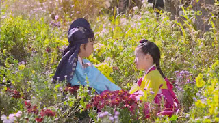 Eun-oh keluar dari padang bunga itu dan mengatakan sesuatu pada gadis kecil itu, mereka terlihat sangat akrab.