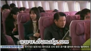 Ji Wan menjawab, pesawat tertuda mendarat karena ada kabut tebal. Tapi wanita itu tetap tidak mau mengerti, dia langsung berlari menuju pintu pesawat, dia mencoba membuka pintu pesawat. Ji Wan dan pramugari yang lainnya menghentikannya, Ji Wan meminta dia untuk menunggu sebentar lagi. Wanita itu pun mengatakan kalau dia tidak bisa menunggu lagi, dia mengungkapkan kalau suaminya sedang kritis, jadi biarkan dia keluar. (hmmmm... Terus kalo wanita ini keluar apa dia bisa langsung ketemu suaminya... Pake logika doong,,, itu pesawat bukan mobil... Kalo pintu pesawat di buka... Bukan hanya suaminya yang mati karena gak ketemu sama dia, tapi juga dia sendiri dan penumpang yang lain akan mati...)
